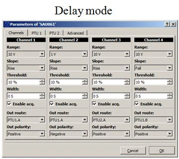 - Easy adaptation to the application requirements by presenting of parameters defining operating mode, acquisition of input events and the timing of output trigger pulses.