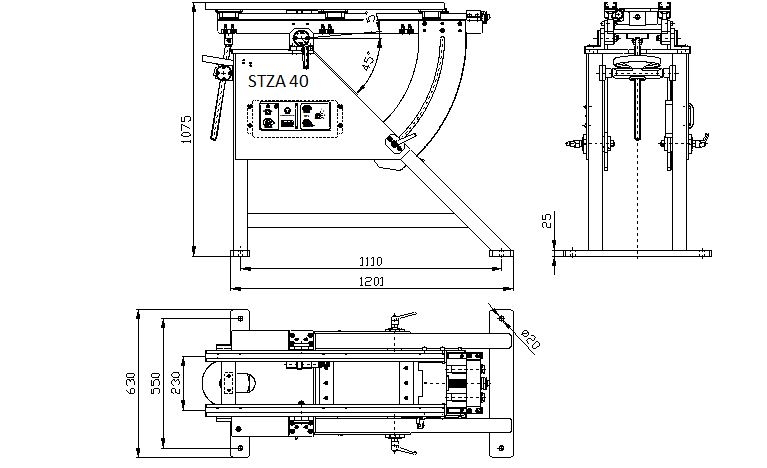 STZA 40 is universal stand equipped by clamping rails with 230 mm pitch for tightening of various Prototypa firing equipment.