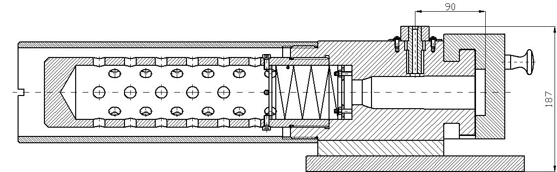 PROTOTYPA VRP Medium Calibre Drilling Jig serves for drilling take-off holes into cartridge cases for powder gases pressure measurement or medium calibre cartridges. Positioning slot at the cartridge bottom rim, which is used for positioning the cartridge in ballistic gun, is made by means of cutter on milling machine. Device is not designed for cartridges with high explosive projectile.